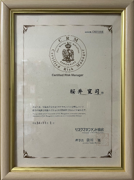 - RIMS / PLM / MRM(日本リスクマネジメント協会認定)