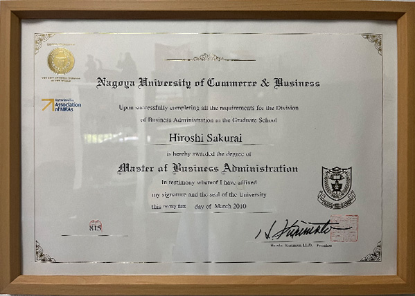 名古屋商科大学経営学大学院にて経営学修士(MBA)取得